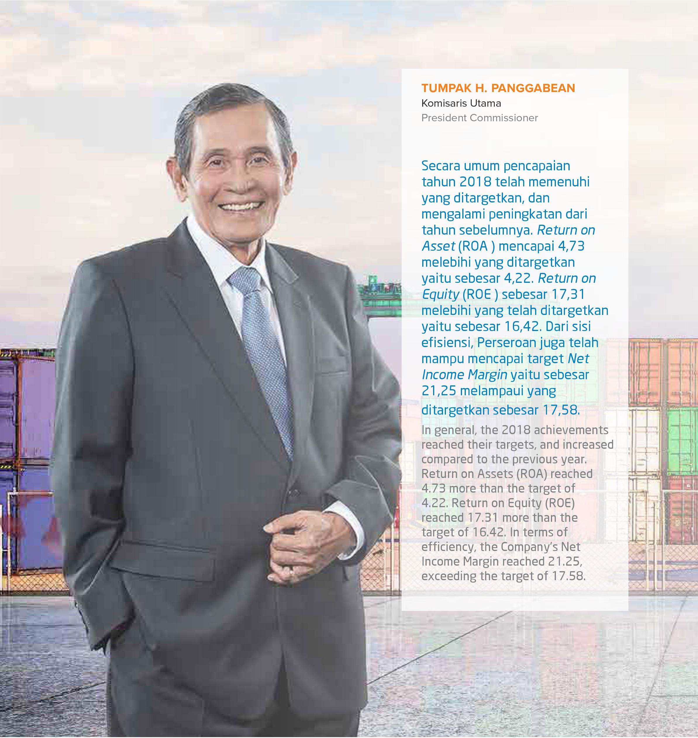 Berdasarkan analisis perekonomian dan kondisi industri kepelabuhanan, Dewan Komisaris menyampaikan apresiasi atas kinerja Direksi yang mampu menghadapi tantangan makro dengan baik. Pada tahun 2018, Direksi telah berhasil dalam mengimplementasikan digital port yang berkontribusi pada kinerja Perseroan melalui peningkatan efisiensi pada sisi laut, terminal, maupun back office. Terobosan digital port yang telah dilakukan di antaranya adalah implementasi autogate, Tempat Penimbunan Sementara (TPS) Online, dan auto tally di terminal peti kemas, operasi berbasis Terminal Operating System (TOS), penerapan Marine Operating System (MOS), dan Vessel Management System (VMS) pada sejumlah cabang pelabuhan. Perseroan juga telah menginisiasi Penerapan Integrated Billing System (IBS), yang di dalamnya terdapat aplikasi e-registration, e-booking, e-tracking and tracing, e-payment, e-billing, dan e-care, yang akan mengintegrasikan sistem pelayanan jasa kepelabuhanan di seluruh pelabuhan yang dioperasikan.